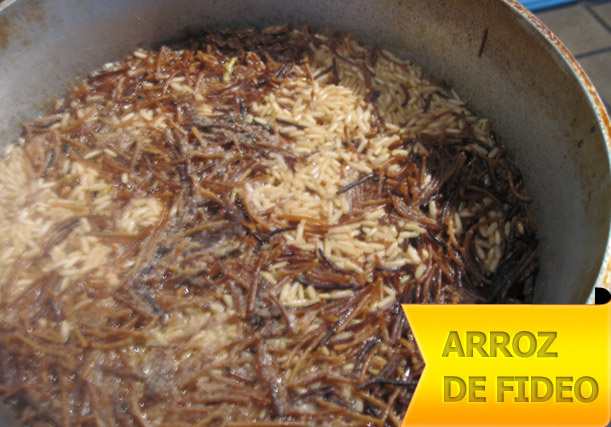 El arroz con fideos con esa mezcla de texturas, sabores y colores lo hacen ideal para acompañar platos con salsa. No sé en qué consiste, pero no hay nada más rico que comerse este arroz con un poco de salsa del guiso que se le rocía por encima, es una delicia, incluso parece que se intensifican todos los sabores.