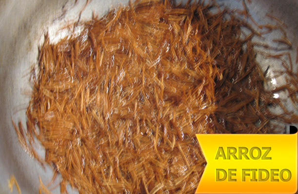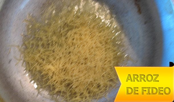 MENEAR los fideos constantemente mientras se fríen; este paso es muy importante porque debemos vigilar que los fideos no se quemen pues le darían un mal sabor al arroz.