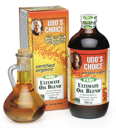 El aceite Udo’s Choice es más alto en aceites poli insaturados no refinados, con un equilibrio bueno y saludable de omega-6 y omega-3. Hay numerosas variantes del aceite Udo’s Choice, y una de ellas (llamada Mezcla DHA 3-6-9), incluso contiene un aceite de algas DHA en la mezcla, junto con aceite de linaza orgánico, aceite de prímula, aceite de salvado de arroz, germen de avena y aceite de salvado y algunos otros.