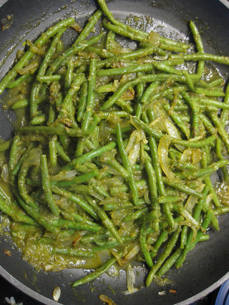 - Cocina unas habichuelas unos 7 minutos en agua hirviendo y sumérgelas en esta salsa [Así la prepare en esta ocasión]